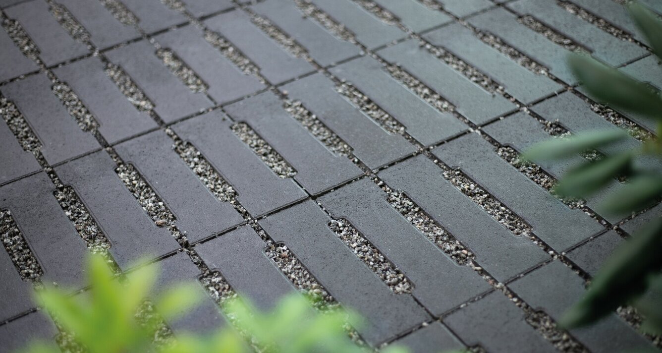 Tvarovaný povrch dlažby Erba s priesakovými otvormi kombinuje súčasný tvar s prírodnou zeleňou. Priesakové otvory je možné vyplniť aj kamenivom - ideálna veľkosť 2/5 mm. Vďaka 16% vsakovacej ploche je táto ekologická dlažba obzvlášť šetrná k životnému prostrediu.