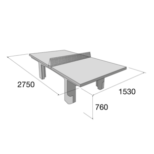 Betónový pingpongový stôl sa výborne hodí do parkov, na verejné ihriská a najmä na miesta, kde je potrebná zvýšená odolnosť proti poveternostným vplyvom a intenzívnemu používaniu. Prednosťou tohto stola je jeho hmotnosť, minimálne nároky na údržbu a dlhá životnosť. Pingpongový stôl dodávame v demontovanom stave na štyroch atypických paletách. Celá „stavebnica“ pozostáva zo šiestich betónových častí, ktoré do seba presne zapadajú. Hracie dosky stola sú vyrobené z vysokohodnotného celoprefarbeného zeleného betónu. Súčasťou stola je pevná nerezová sieťka. Stôl je mrazuvzdorný a je opatrený vnútorným ochranným systémom Protect System IN proti znečisteniu a prenikaniu vody.