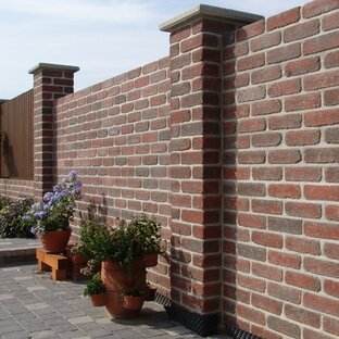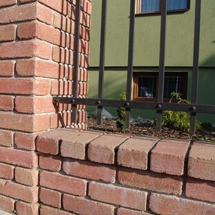 Betónové lícové tehly hladké, alebo obíjané sa používajú k